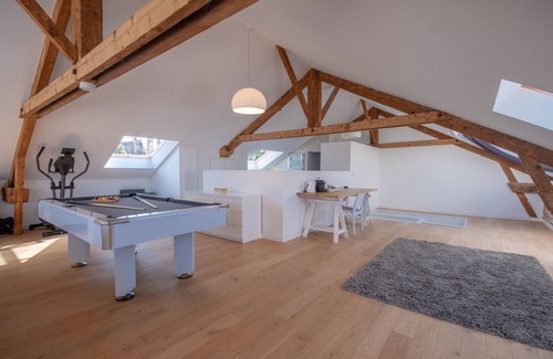 The Loft can accommodate up to 8 people, with 4 bedrooms, two of which have their own private bathrooms. On the top floor, the 100 m² master suite offers a spectacular view of the entrance to Paimpol Harbor. It includes a lounge with a pool table, a hot tub, and promises timeless moments of relaxation.