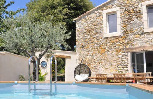 "A little corner of paradise" is a stone cottage with direct view of the village vineyard. We wanted to revive this old sheepfold which has become a peaceful vacation spot, ideally located between Grignan, Nyons and Dieulefit. The combination of stone and modern renovation make it a spacious and very pleasant place in any season, for a perfect stay with family or friends! Of course the swimming pool in front of the terrace as well as the river at 2 steps will delight young and old.