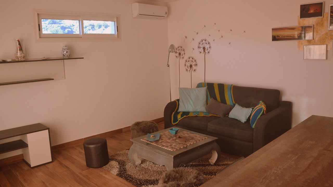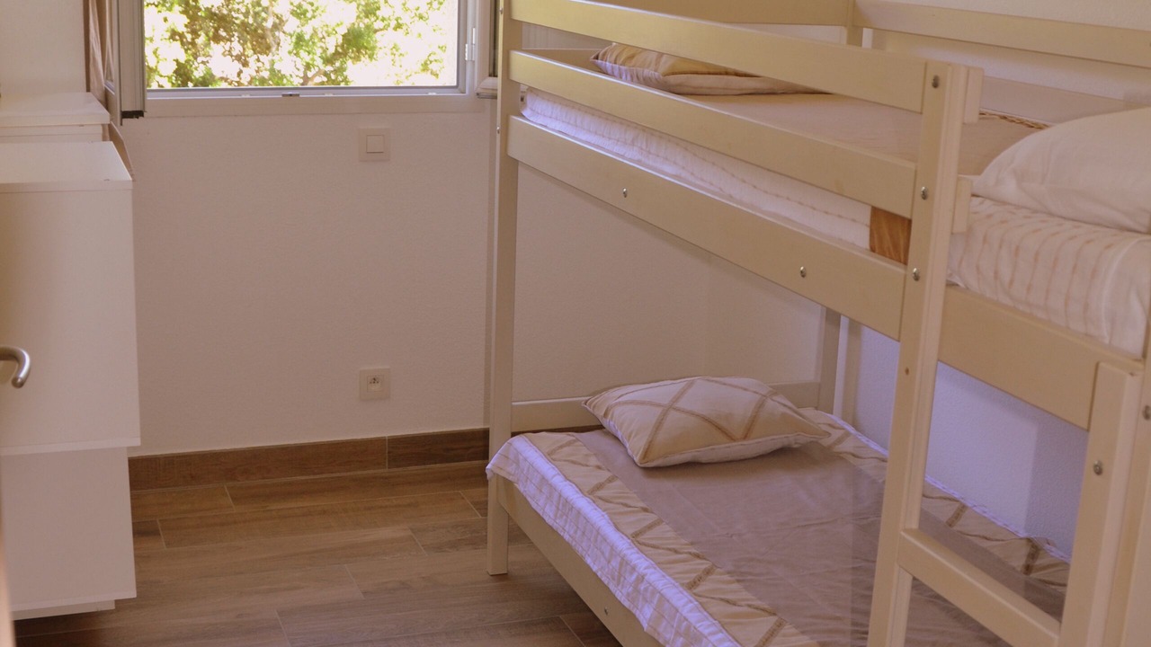 Composed of a living room, two bedrooms (one with a bed 140 cm and another with a bunk bed two beds of 90cm), 1 sofa bed 130cm, a bathroom with shower.