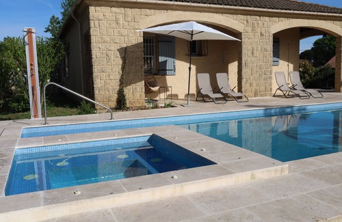 Cozy vacation home with heated pool + whirlpool, sauna Pet friendly is located in Castillon-du-Gard. Cozy vacation home with heated pool + whirlpool, sauna Pet friendly provides accommodation, featuring Private Pool, Sports/Activities, Spa, among other amenities. This House features Private Pool, Sports/Activities, Spa, to make your stay a comfortable one.