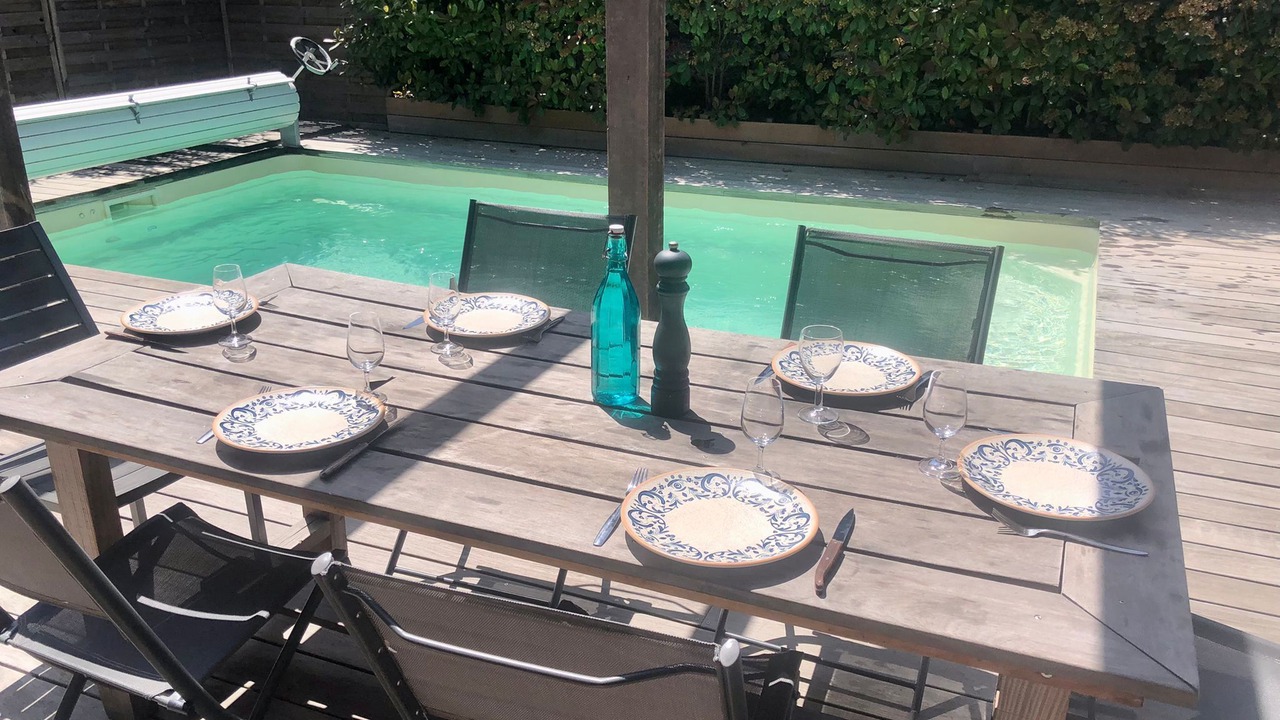 It is a luxurious new villa of 120 m2 with 4 bedrooms which all overlook picture windows and panoramic terraces, it is equipped with 2 bathrooms and 2 WCs and can accommodate up to 2 families or 4 couples. A master suite, an extra bedroom on the ground floor and 2 bedrooms upstairs. The decoration is varied and the swimming pool 6m * 3m * 1. 50m (swimming against the current) is heated. Parking provided for cars.