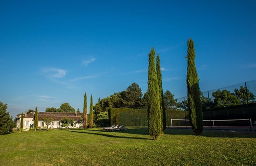 Beautiful volumes and perfectly equipped, in perfect condition and decorated with care and taste for beautiful things. Several terraces and shady areas designed for relaxation and rest. Heated pool, equipped and secure (submerged alarm), summer living area, private tennis court. Main house of 400m2: large kitchen / living room, 2 large living rooms and 3 large bedrooms (2 double bedrooms, 1 bedroom with 4 single beds), 2 shower / WC, TV room, laundry. Dovecote adjoining the pool serving as pool house with sink toilet, fridge, outdoor shower upstairs small bedroom 2 single beds.
