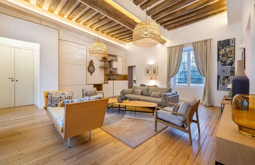 Beautiful realization for this 106 sqm apartment, entirely renovated, on the 1st floor without lift, with two bedrooms and two bathrooms, a few steps from the Place des Vosges.