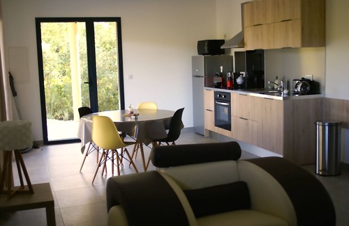 This new 70m2 gite with its double terrace offers you all the comfort you need to relax. (private heated pool, air conditioning, internet access, tv, bbq ...) you will discover an unobstructed view of the 8m x 4m pool and the maquis.