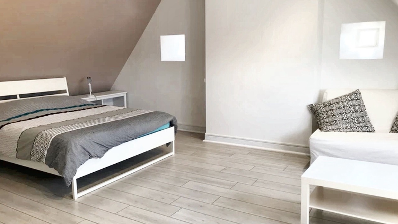 The indoor spaces of the apartment boast a spacious living room where you can relax on the sofa in front of the fireplace. A kitchen with dining area makes it easy to prepare meals together, and the private entrance ensures pleasant access. The rental is equipped with central heating and modern amenities such as a washing machine and TV for a comfortable stay.