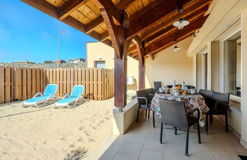 Modern, beautiful single-family house "La Chapelle". 200 m from the centre of Contis-Plage, 9.5 km from the centre of St. Julien-en-Born, 20 km from the centre of Mimizan-Plage, in a central, sunny position, 100 m from the sea, 100 m from the beach. Private: property 400 m2 (fenced), parking (for 2 cars) at the house on the premises. Shop 200 m, supermarket 9.5 km, bus stop 200 m, sandy beach "Contis-Plage" 100 m.