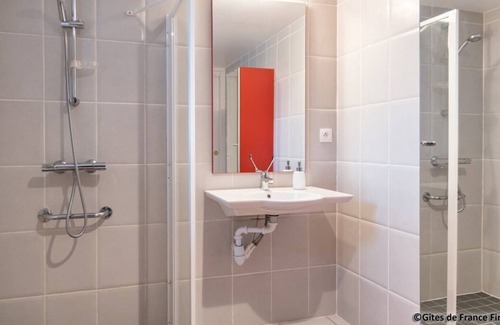This gîte between land and sea is attached to another gîte / it has been tastefully furnished and decorated. Gr.fl.: kitchen opening onto a dining room/lounge with wood-burning stove, double bedroom and en suite shower room/wc, utility room, wc. Upstairs: mezzanine, double bedroom with queen-sized bed, bathroom/wc, twin bedroom, shower room/wc. All bedrooms have a walk-in wardrobe. Beds are made up ready for your arrival. Wi-Fi. Garden, garden furniture, BBQ and terrace. Shared swings, shed. Ideally situated in peaceful countryside and close to sandy beaches this gîte boasts a light and spacious interior. It offers outstanding views of the sea arm. Enjoy this functional place suitable for people with disabilities.