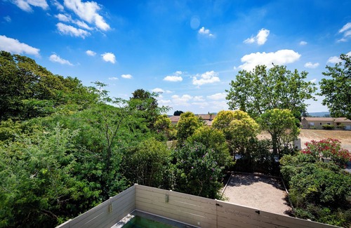 Welcome to this luxury gîte in Saint Nazaire d'Aude, South of France. This air-conditioned and heated retreat features 3 double bedrooms with queen-sized beds, two modern shower rooms, a fully equipped kitchen with seating for six, and a spacious living room furnished with Chesterfield sofas and a smart TV. Outside is a private garden with dining for six, sun loungers, a BBQ, a south-facing terrace, a refreshing plunge pool, and a boulodrome. The gîte comfortably accommodates up to six guests.