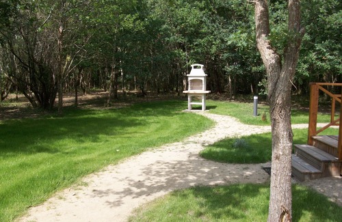 For people who love nature and calm, 15 minutes from MONTALIVET LES BAINS, rest assured, shaded area, forest, parking, wooden terrace, with garden furniture, parasol, sunbathing, hammock, barbecue.