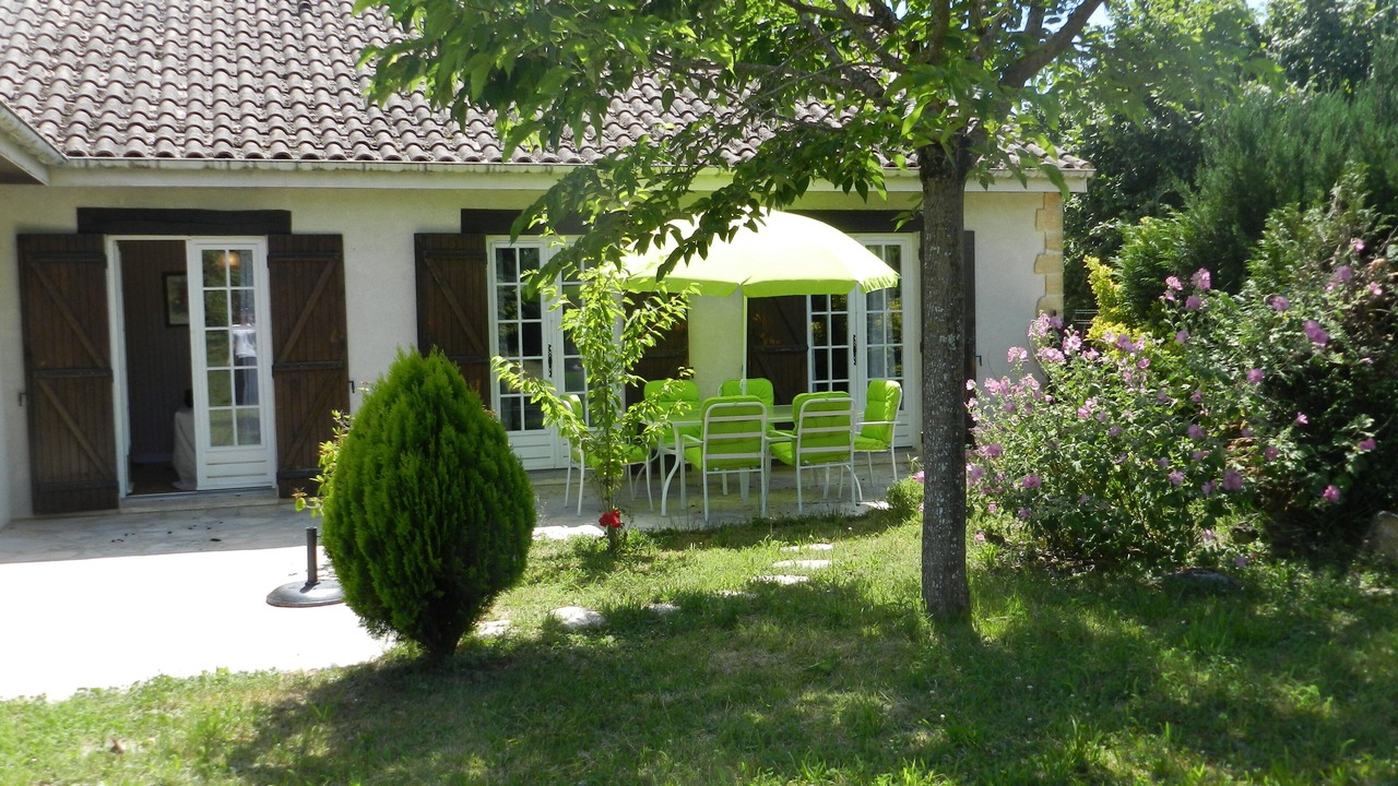 Pretty house, 110m2, full foot on garden of 1300m2, terrace with garden furniture, barbecue, with 3 chamb, living room, kitchen. furnished, bathroom, fireplace