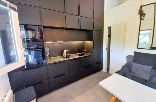 Enter its living room with a UP et DOWN table and a flat screen TV / DVD player. To your aprons! Even on vacation, prepare good meals in its fully equipped kitchen area: 2 induction hobs, a microwave, an electric oven, a Nespresso coffee maker, a refrigerator with a freezer and a dishwasher...