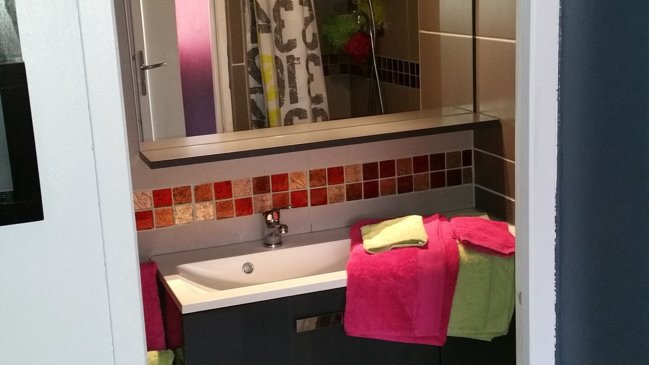 The room is not very large but it has a real 140 bed, good bedding with sheet, duvet and duvet cover, pillows ..., a 32 '' tv, a kitchen kitchenette with induction hob, microwave, fridge, 2 coffee makers, kettle, toaster, dishes, kitchen utensils, basic products: salt, pepper, mustard, sugar, dish cloths.