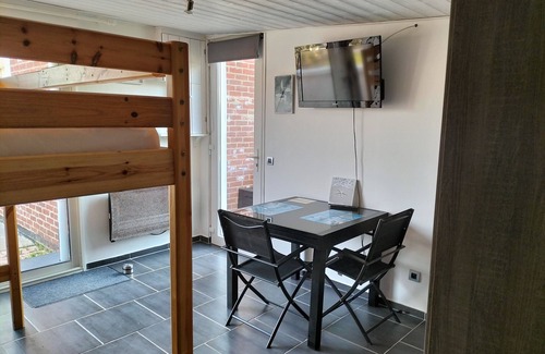Studio near the beach is located in Mesnil-Val. Studio near the beach provides accommodation, featuring TV, Balcony/Terrace, Security/Safety, among other amenities. This Apartment features TV, Balcony/Terrace, Security/Safety, to make your stay a comfortable one.